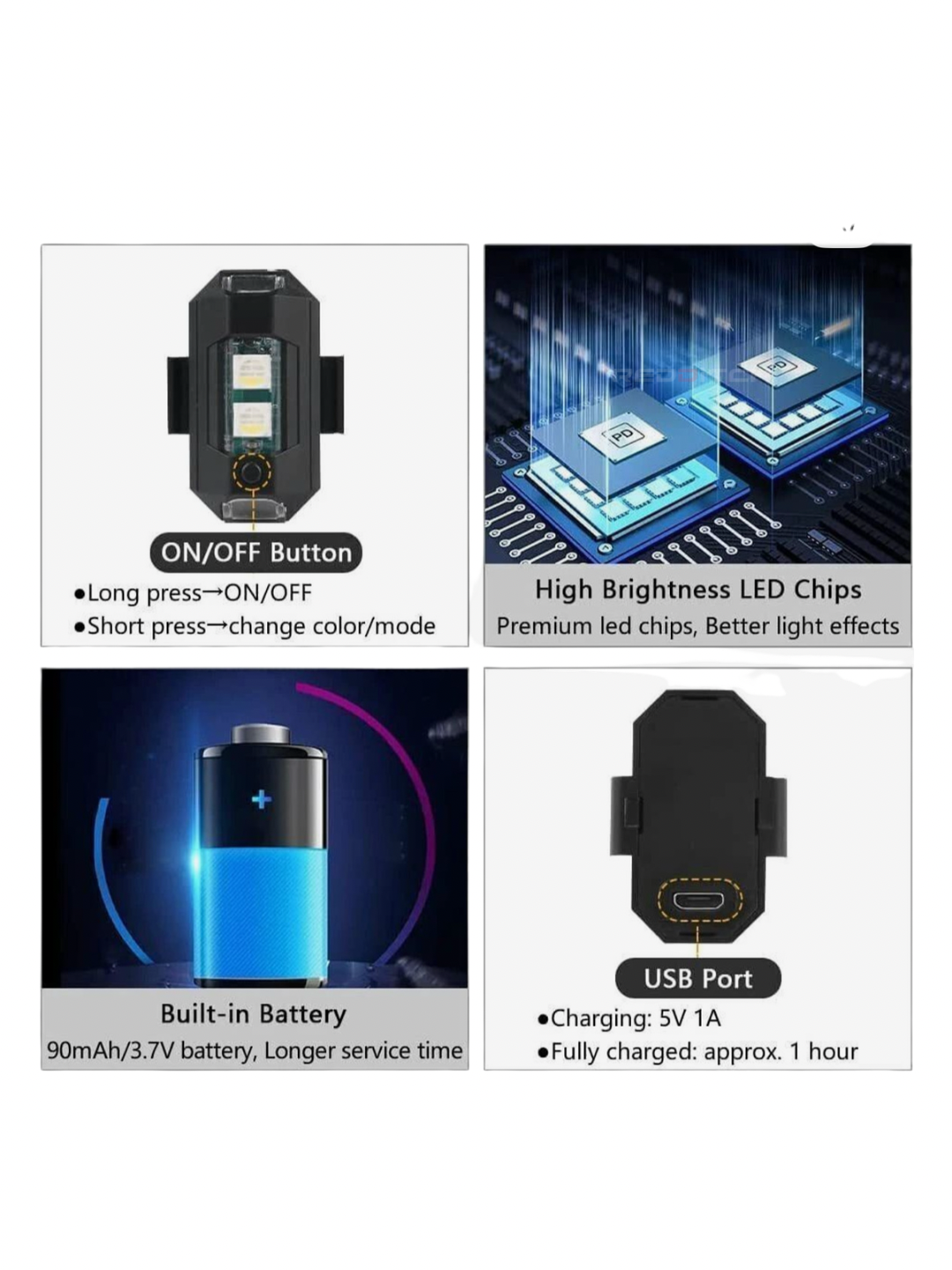 Multiple Lighting Patterns: The Aeroplane Light goes beyond static illumination by offering multiple lighting patterns. Whether it's a steady glow, pulsating rhythm, or a dynamic sequence, users can select the pattern that suits their preference or activity.