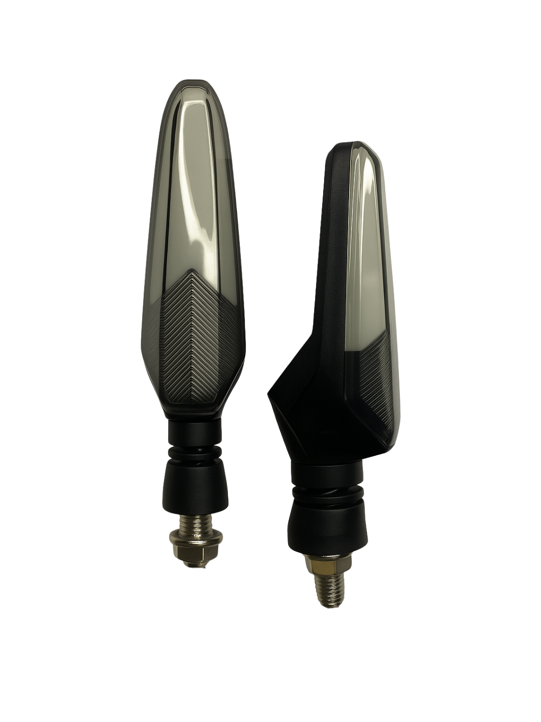 DMC Sword Indicators—sharp blade design with bright Yellow/Red LEDs for stylish, high-visibility signaling.